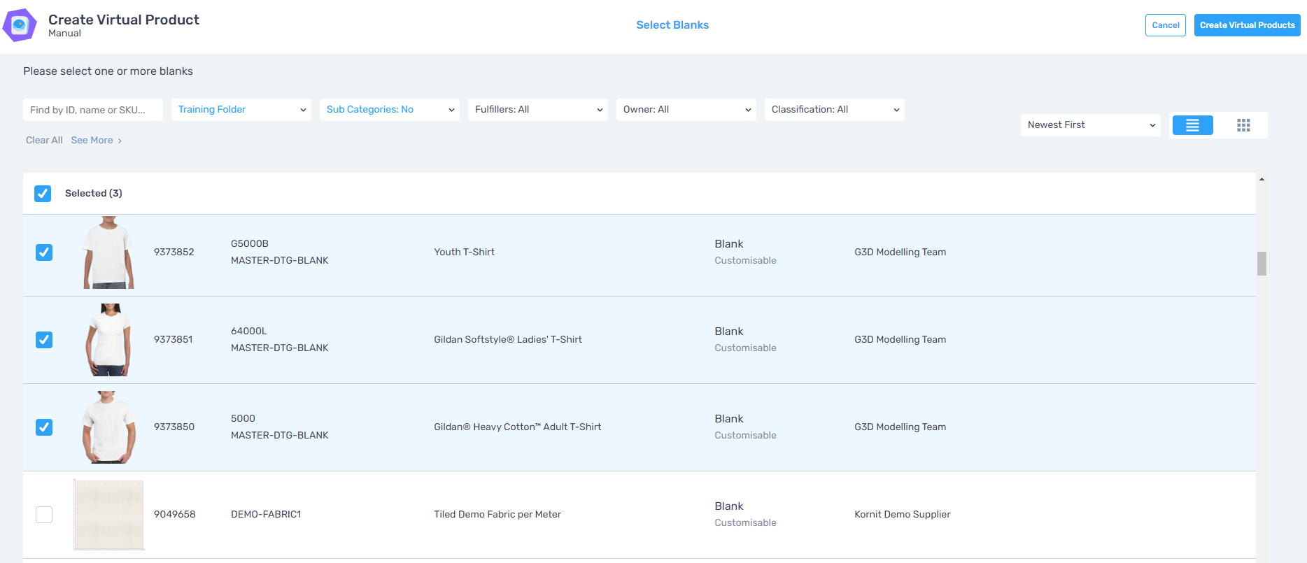- Select Blank Products using the tick box next to each product listing.